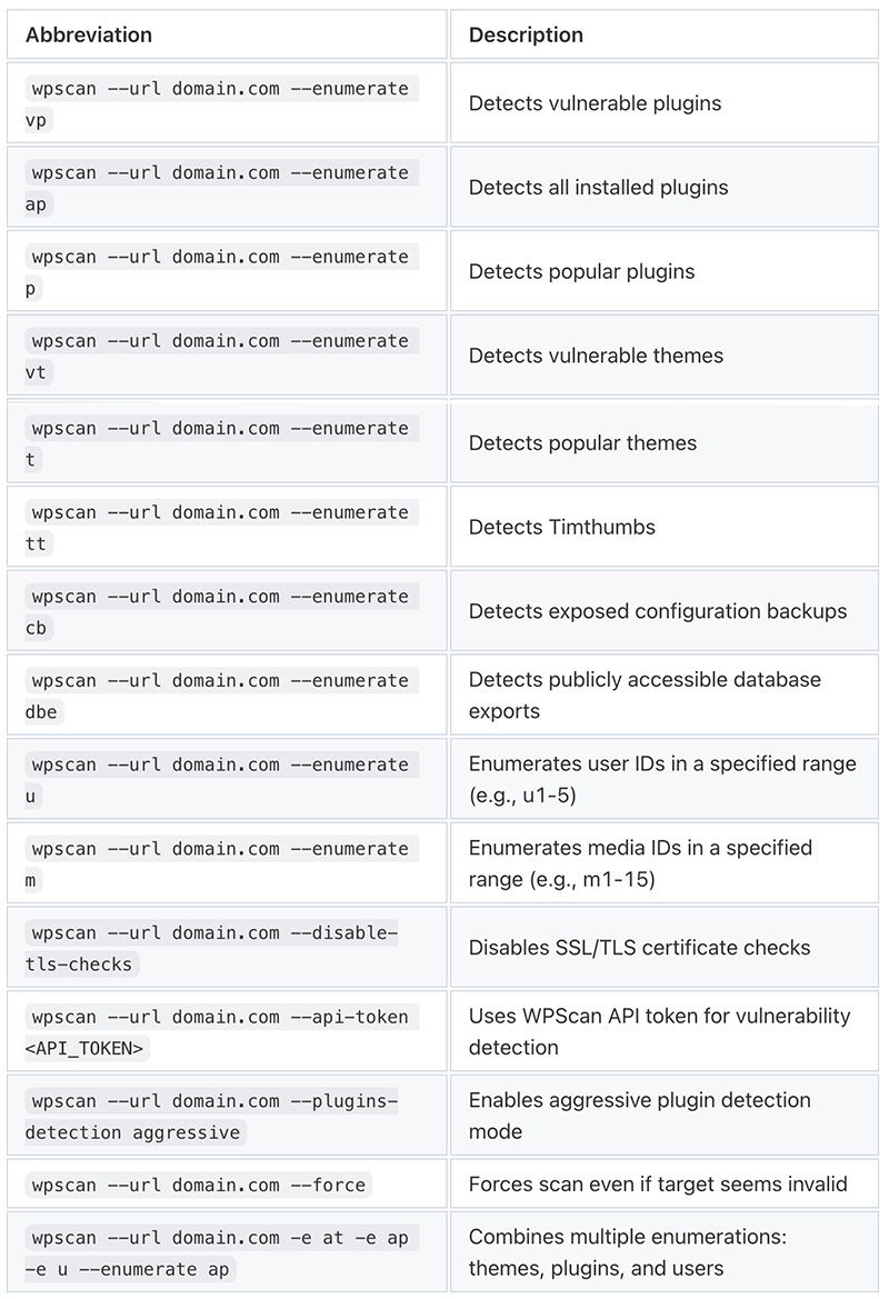 wpscan --url https://domain.com --api-token YOUR_TOKEN